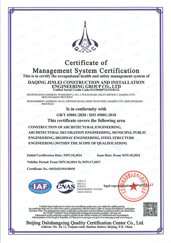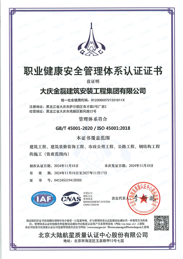 職業(yè)健康安全管理體系認(rèn)證證書